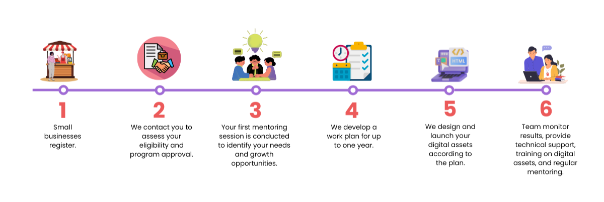 Our Specialized team will contact business, analyze their needs, and identify digital opportunities based on their model and target audience. We will provide the necessary tools and develop a minimum viable product (MVP) such website + crm or landing page and marketing strategies to help companies enter the digital environment during a certain period. The platform will also offer training content for employees on the use of relevant tools, applications, and software programs, as well as provide necessary training on data privacy and cybersecurity.